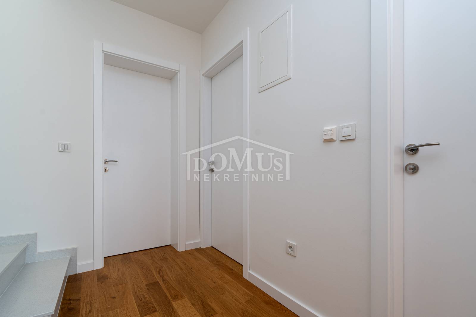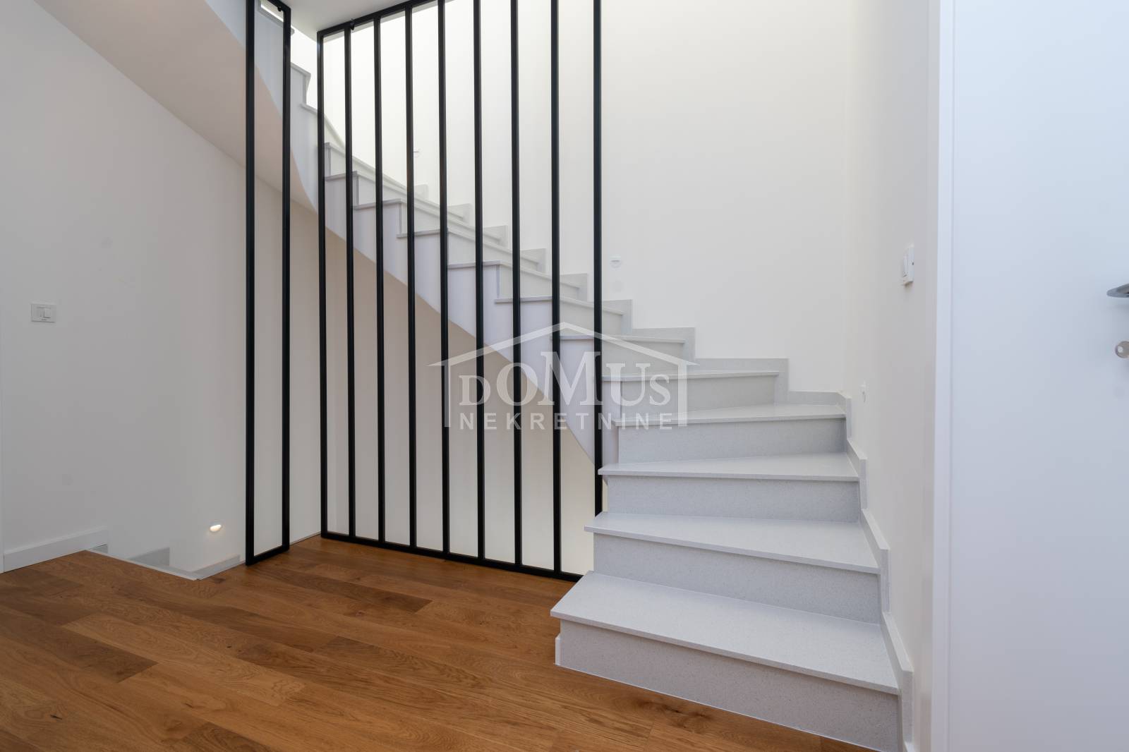 Unutarnje stepenice vode na 1. kat gdje se nalaze 3 spavaće sobe, 2 kupaonice i lođa. Na 2. katu su još dvije sobe, kupaonica i predivna komforna, dijelom natkrivena terasa od 26m2.