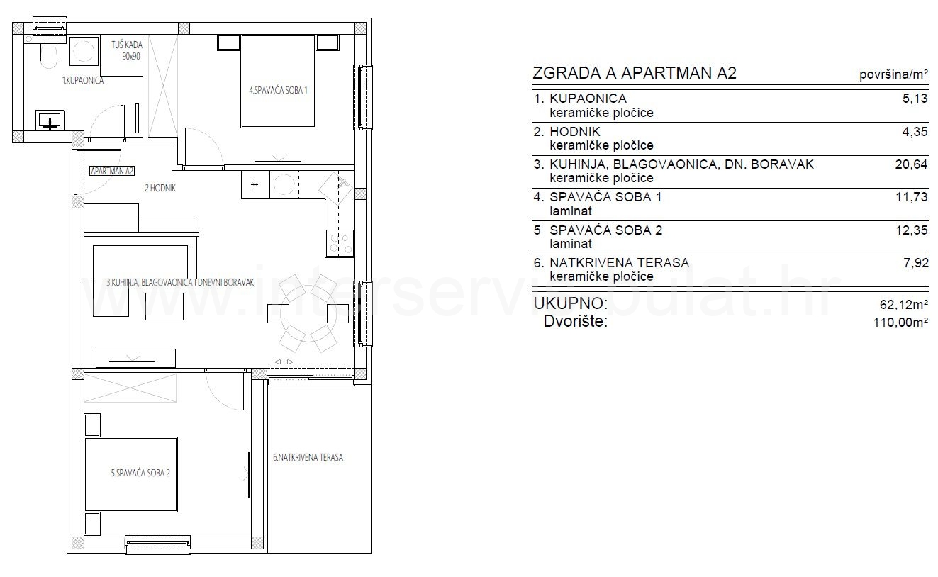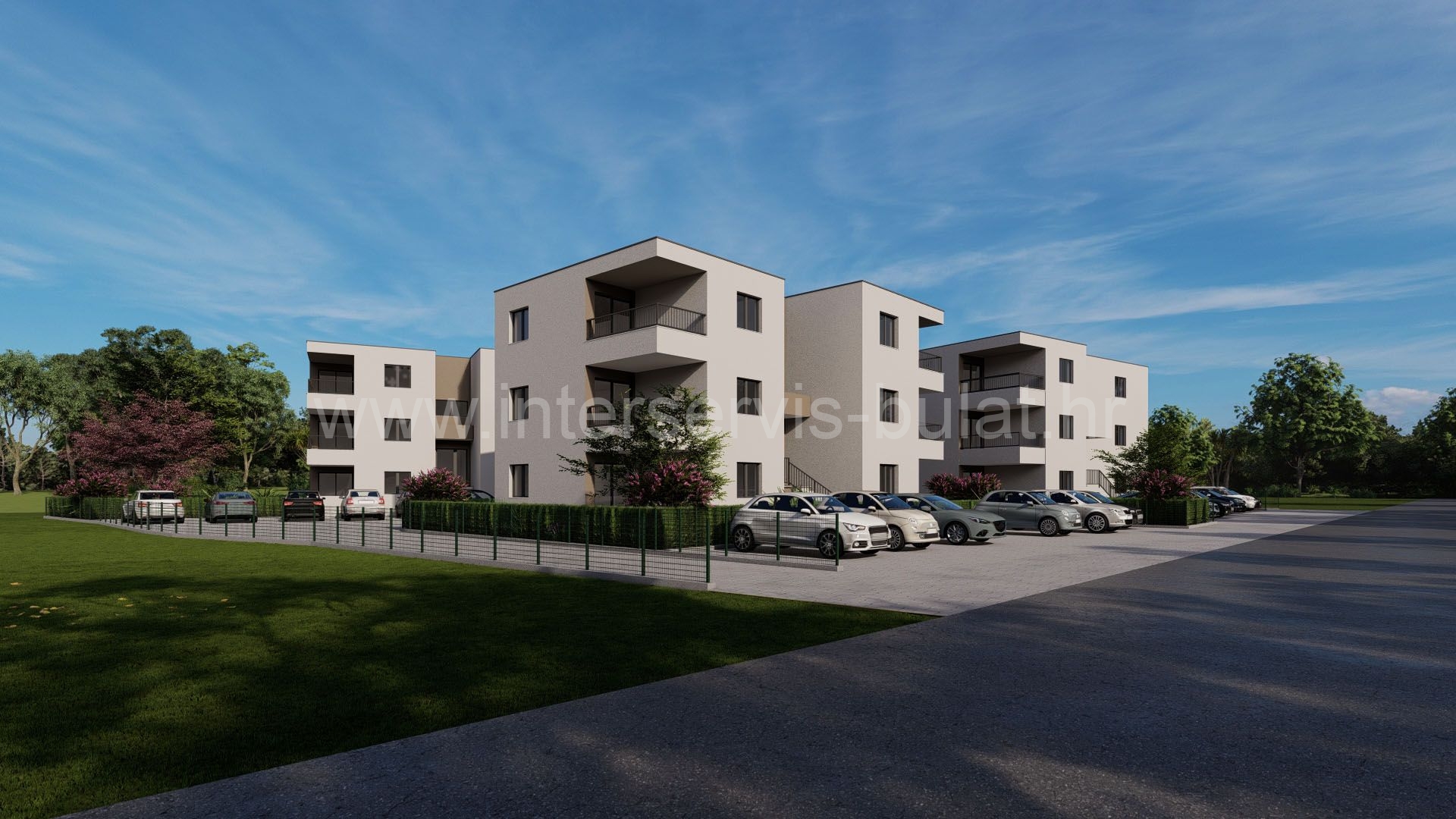 .::: Stan u novogradnji u Ražinama :::. U naselju Donje Ražine pokraj Šibenika grade se četiri stambene zgrade, svaka po šest stanova. Predmetni stan se nalazi u prizemlju zgrade A. Raspolaže sa 62,12m2 stambene površine, a pripada mu i jedno parkirno mjesto, te vrt površine 110m2. Stan se sastoji od hodnika, kupaonice, dvije spavaće sobe i kuhinje s blagovaonicom i dnevnim boravkom sa izlazom na natkrivenu terasu i dvorište. Na zgradama je predviđena fasada sa kamenom vunom, opremljena PVC stolarijom sa električnim roletama, kvalitetnim oblogama i podovima, podnim grijanjem u kupaonicama i klimama. Šibenik je udaljen oko 2km, a plaža na Brodarici oko 2,2km. Predviđeni završetak gradnje je kraj 2027. godine. Obilazak nekretnine moguć je uz prethodni dogovor i rezervaciju termina (minimalno dva dana unaprijed). Molimo pri telefonskom kontaktu obavezno navesti šifru objekta (ID nekretnine). Radujemo se Vašem pozivu.