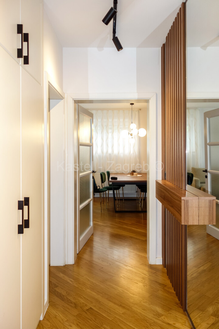 Dvosoban stan u Gračanima, Jandrićeva ulica, površine 82,20m2. Sastoji se od ulaznog prostora, kupaonice, kuhinje, blagovaonice i dnevnog boravka, spavaće sobe, garderobe i terase, ukupne podne površine stana 82,20m2. Grijanje je centralno etažno plinsko, stolarija je pvc, ima brojila za struju, plin i vodu. Orijentacija stana je na sjever, istok i jug. Lijepa, mirna lokacija, u blizini okretišta Mihaljevac. Stan je u potpunosti namješten i opremljen kvalitetnom opremom. Nalazi se u prizemlju dobro održavane zgrade. Parking je slobodan na ulici. Kontakt: Andrea 091 234 9875, andrea@kastel.hr