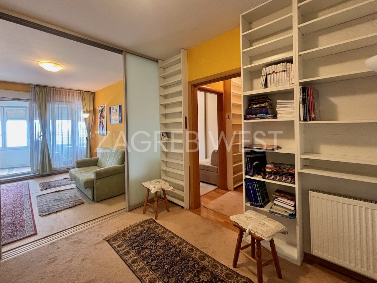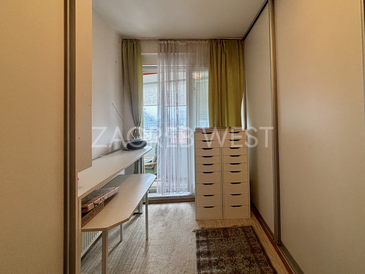 Održavan, komforan dvosoban stan u zgradi liftom, građene 2008. g., koja se nalazi u neposrednoj blizini javnog prijevoza i svih ostalih sadržaja. Nalazi se na 6. katu (od ukupno 8) i odlične je jugozapadne orijentacije, radi čega je pun dnevnog svjetla i ima lijep pogled na grad. Sastoji se od ulaznog hodnika u kojemu je gostinjski wc, kuhinje, dnevnog boravka, spavaće sobe, kupaonice i loggie, na kojoj se može uživati cijele godine s pogledom na grad. Opremljen je s puno ugrađenih ormara, protuprovalnim vratima, i centralnim etažnim plinskim grijanjem. Dodatna mu je prednost što dolazi s parkirnim mjestom u garaži, koje je uključeno u cijenu.