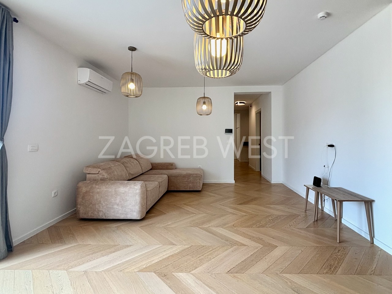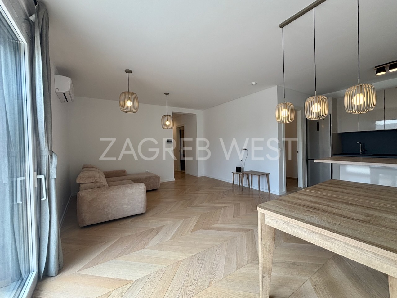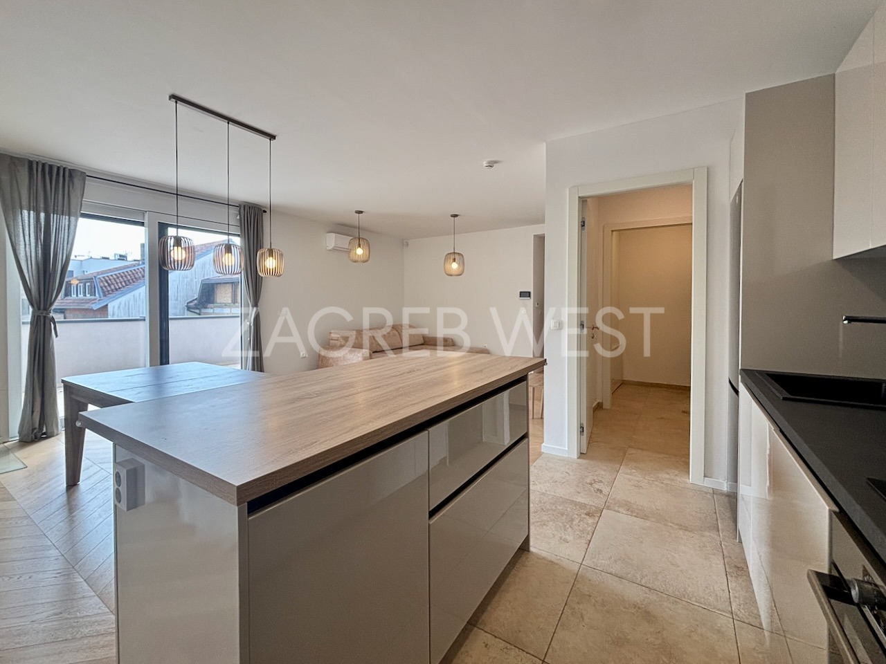 Stan se iznajmljuje djelomično namješten i opremljen s visokokvalitetnom DanKuchen kuhinjom sa svim uređajima, kvalitetnim ugradbenim ormarima i sanitarijama, klimom, svim aparatima, kaminom, podnim grijanjem ispod prvoklasnog hrastovog parketa u chevron izvedbi i alarmom. Gradnja i oprema su najviše kvalitete, uključujući dizalicu topline i alu stolariju za maksimalnu energetsku učinkovitost.